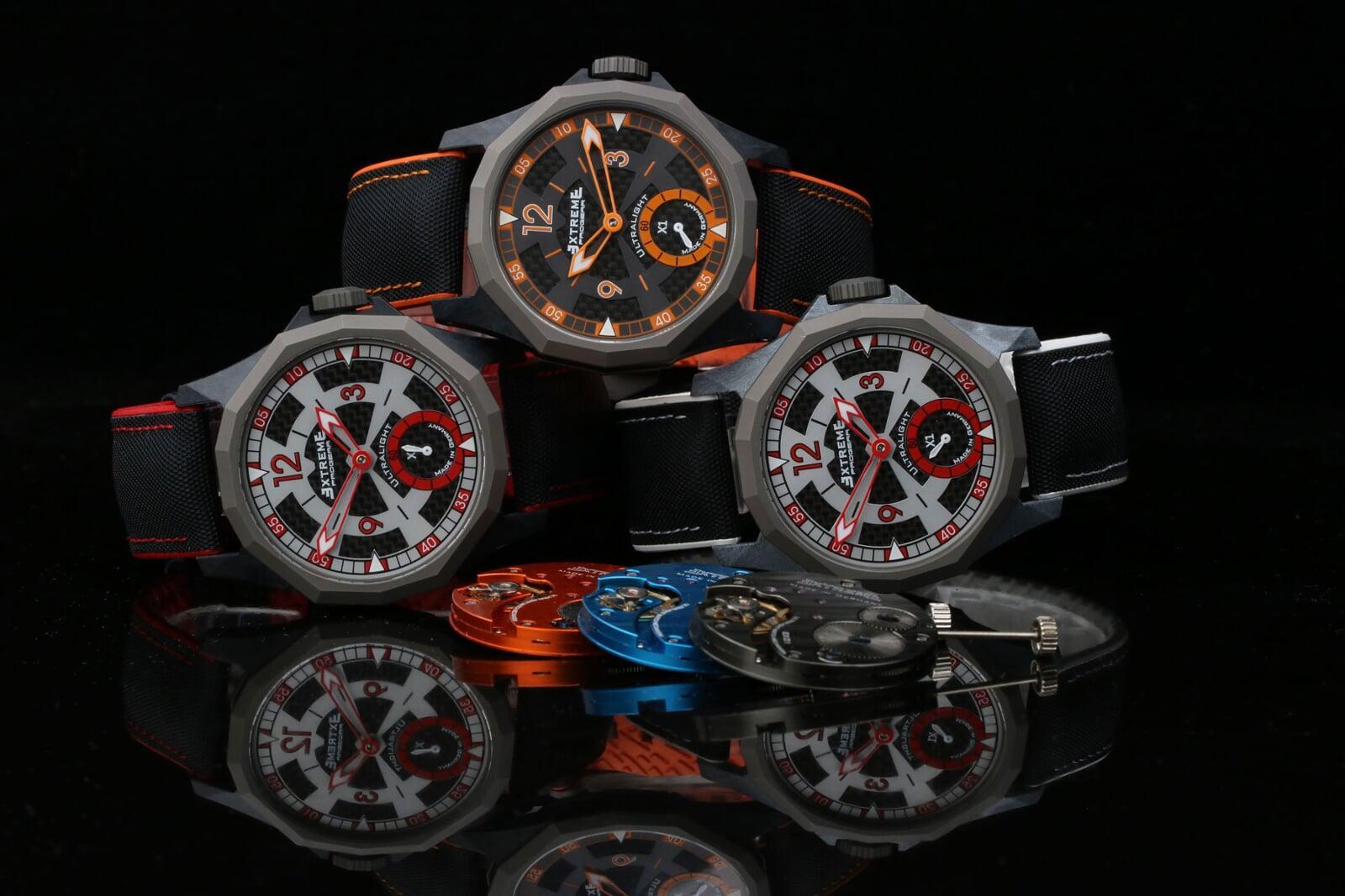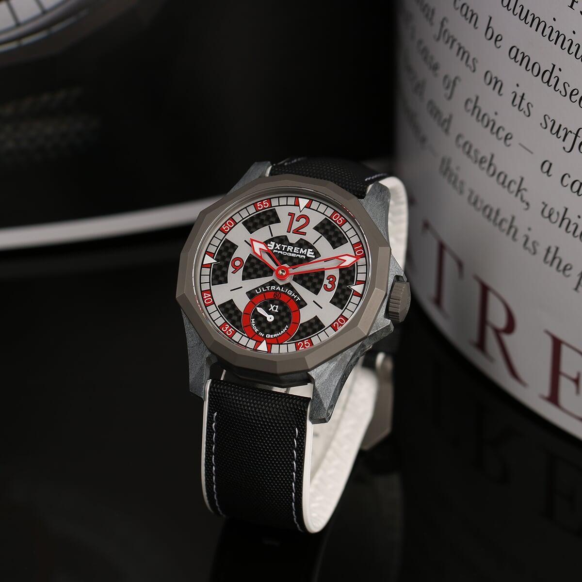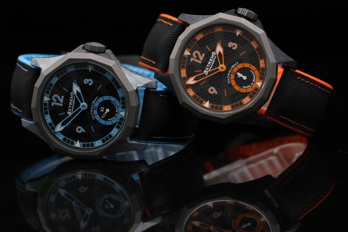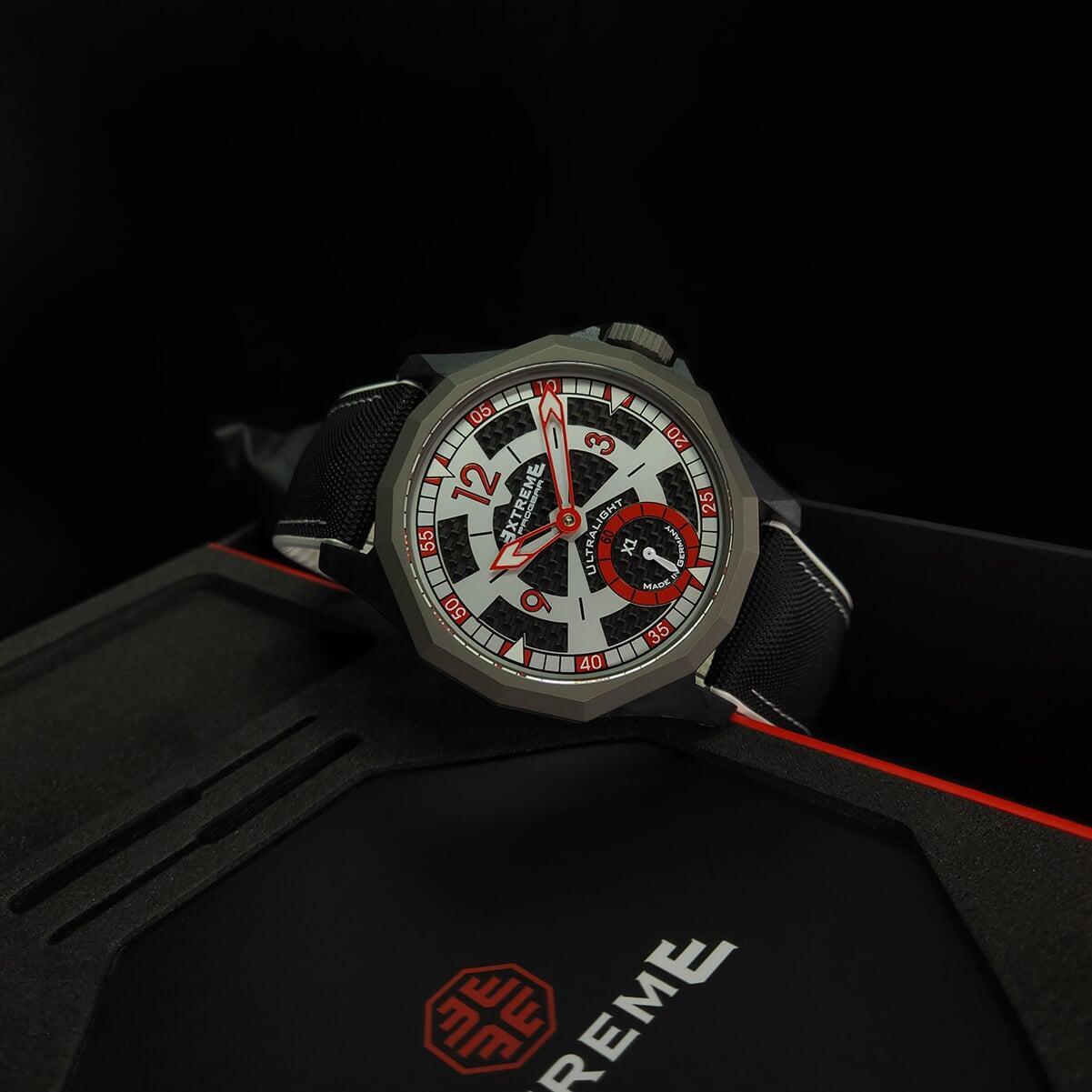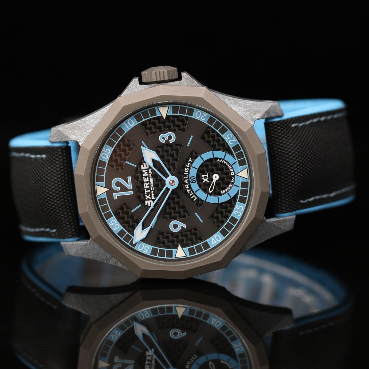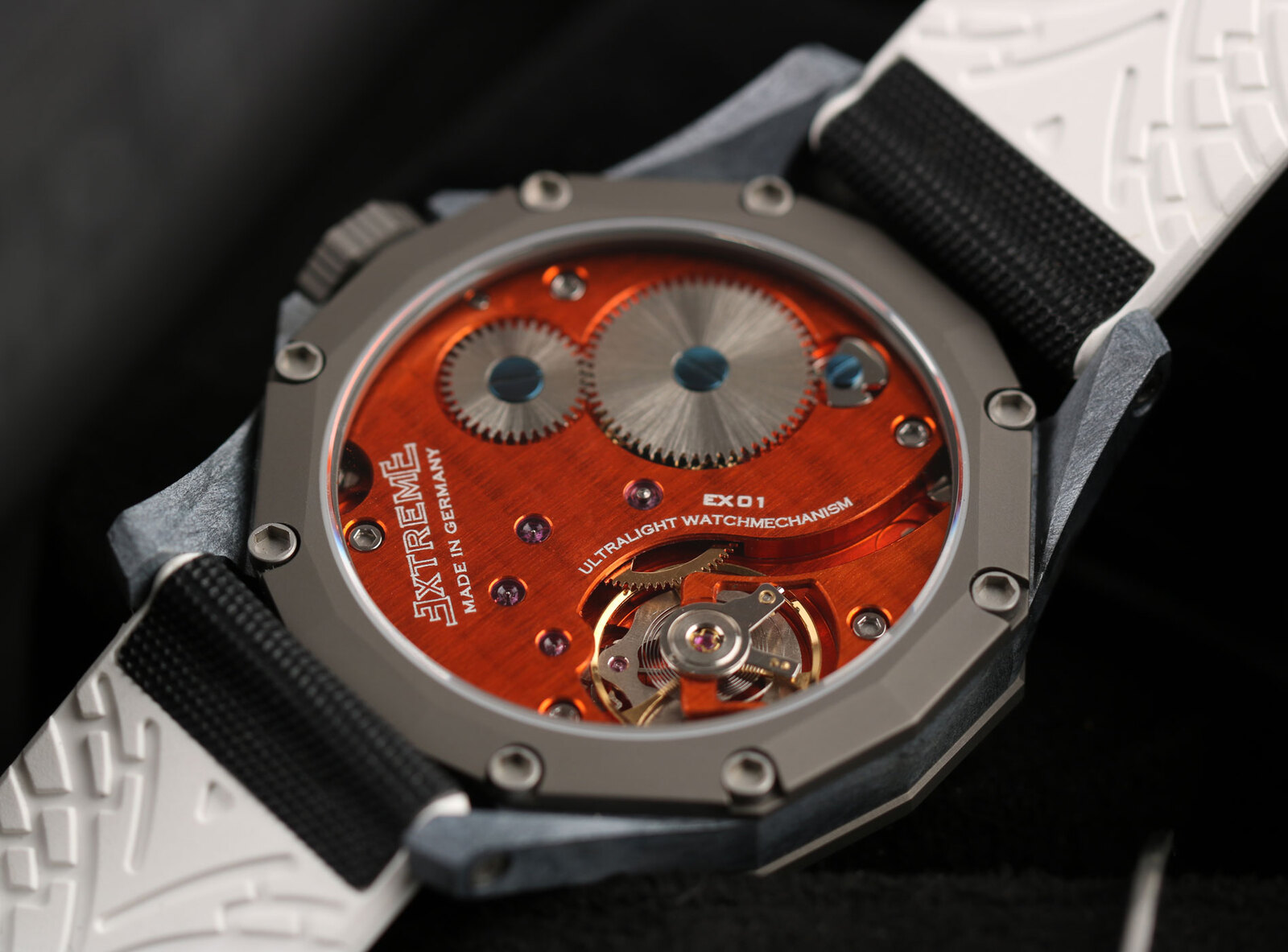 EX001 movement is an in-house designed and produced movement inside X1 model, made in Germany. The same aluminum we see in the EXTREME movement is used in aerospace programs for building the rockets which is definitely the answer for all questions about reliability of this material.