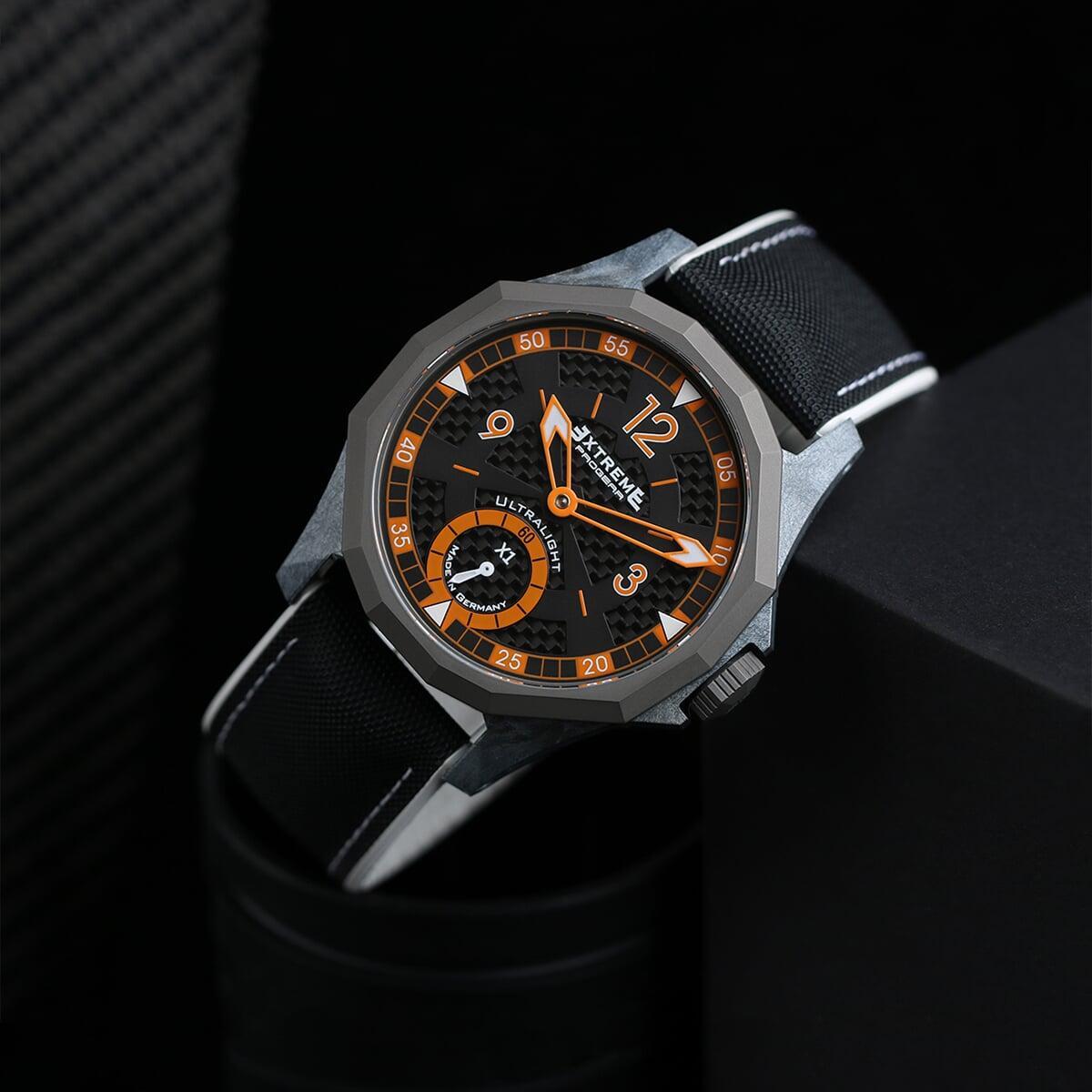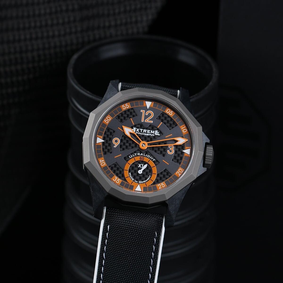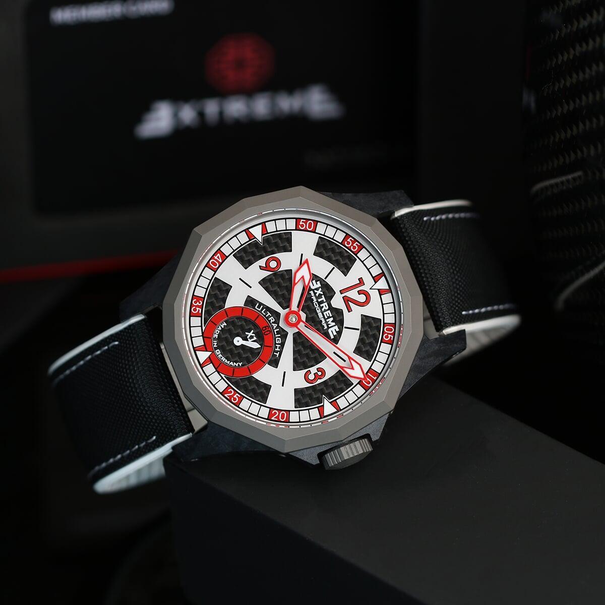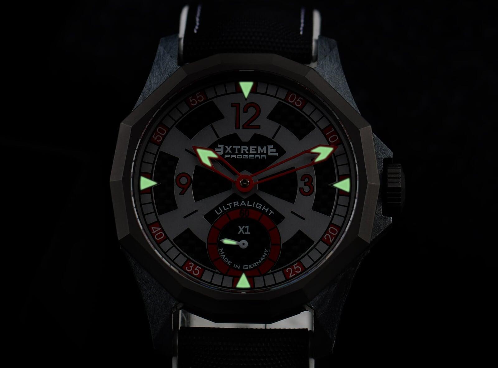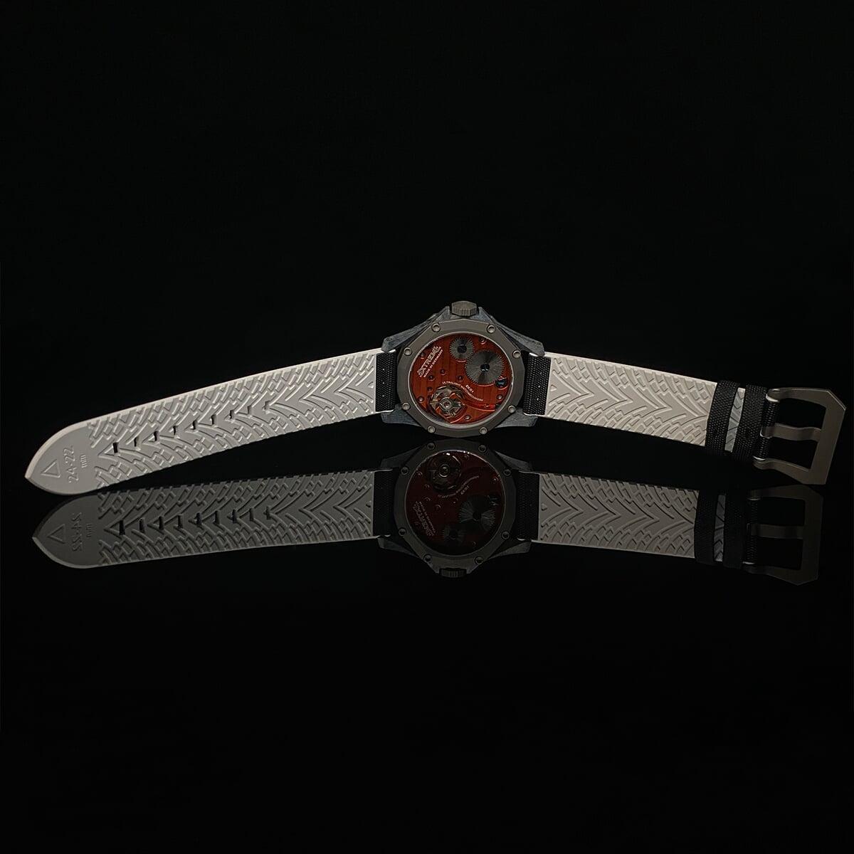 EX001 movement is an in-house designed and produced movement inside X1 model, made in Germany. The same aluminum we see in the EXTREME movement is used in aerospace programs for building the rockets which is definitely the answer for all questions about reliability of this material.