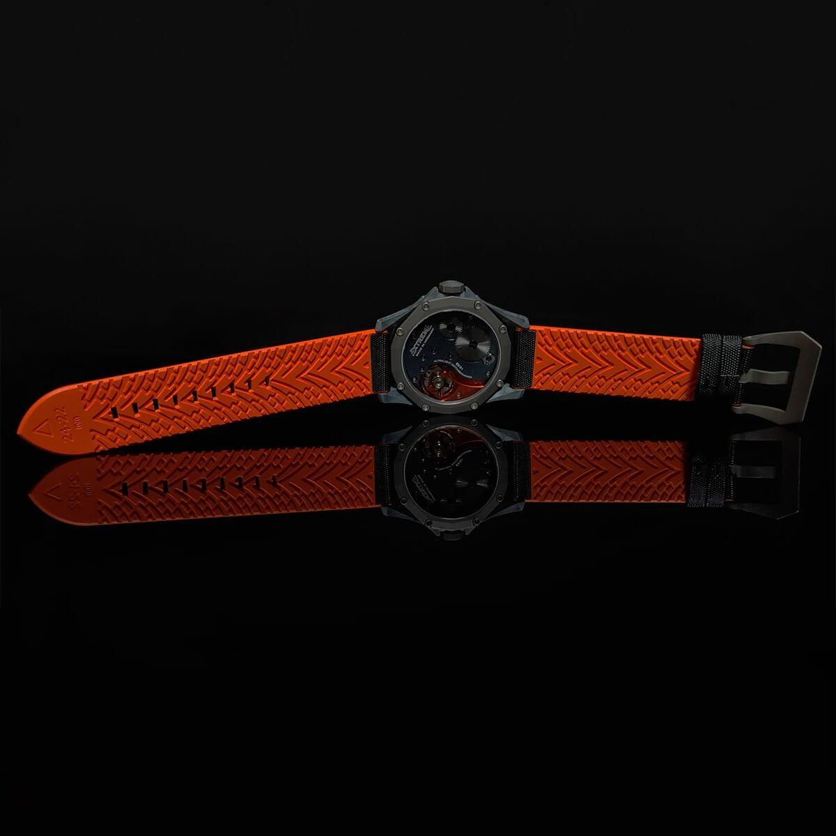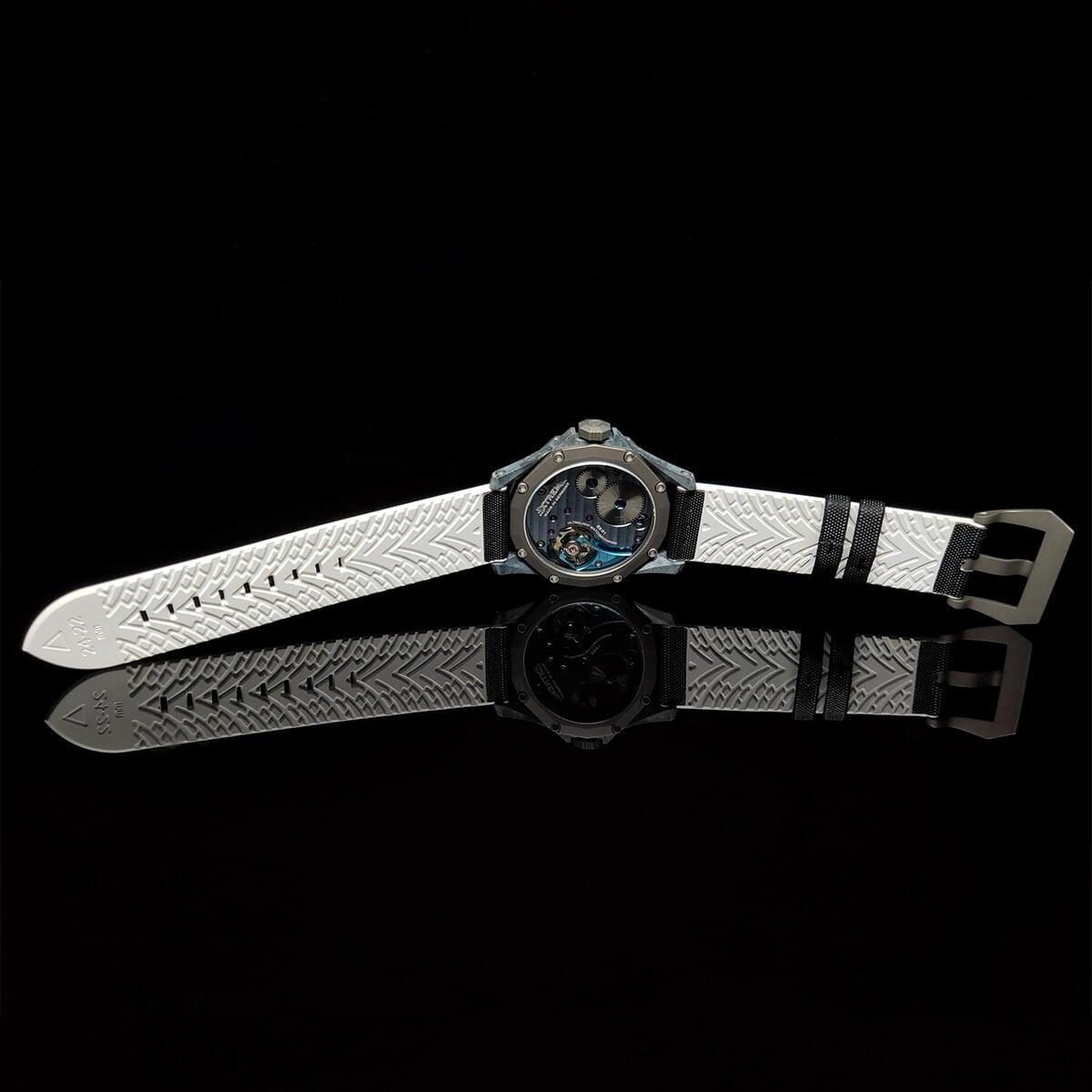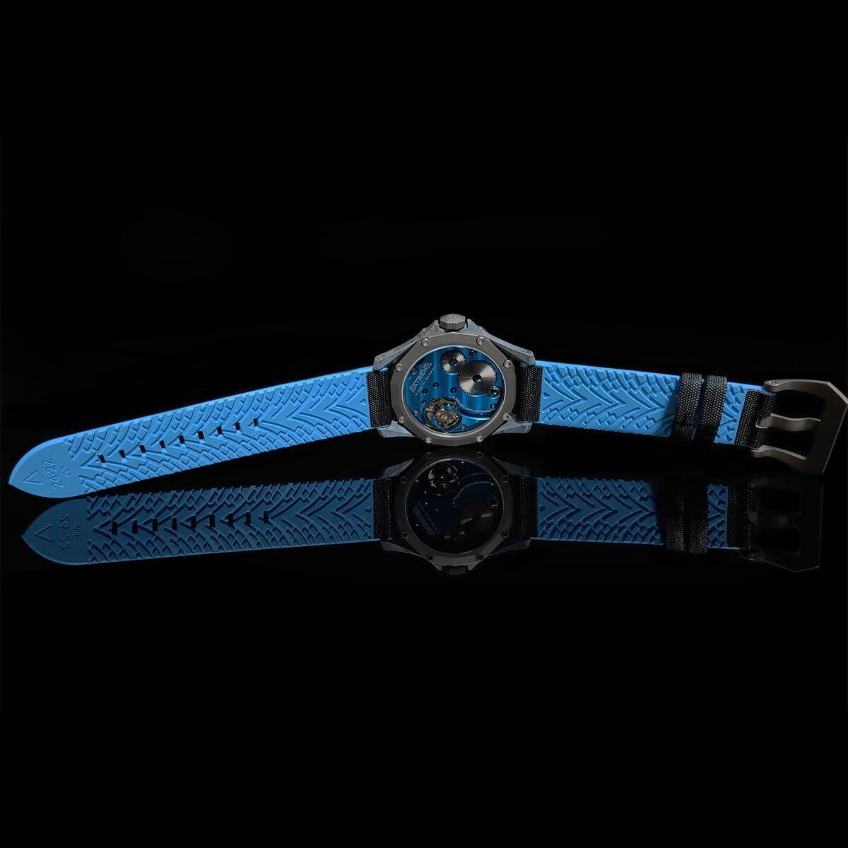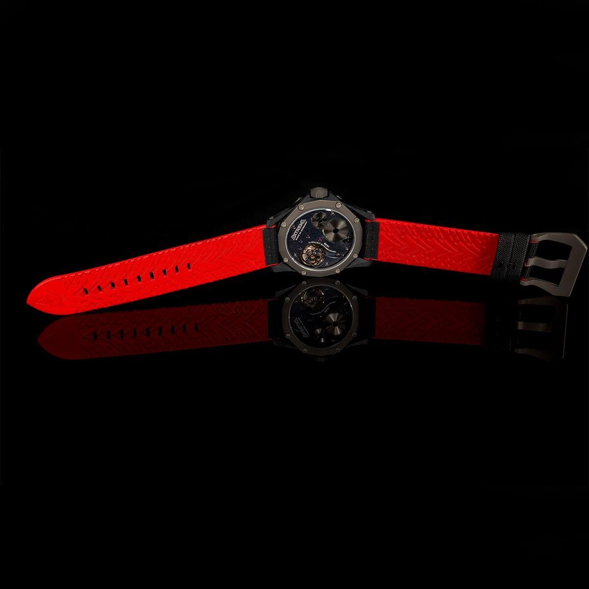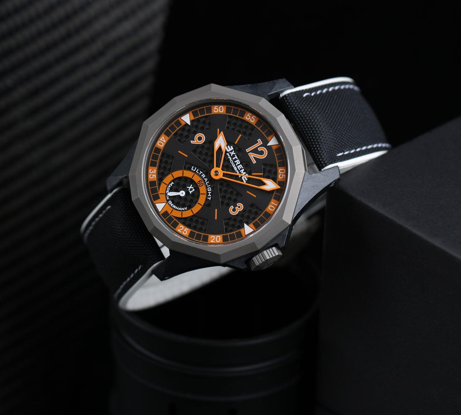 EX001 movement is an in-house designed and produced movement inside X1 model, made in Germany. The same aluminum we see in the EXTREME movement is used in aerospace programs for building the rockets which is definitely the answer for all questions about reliability of this material.