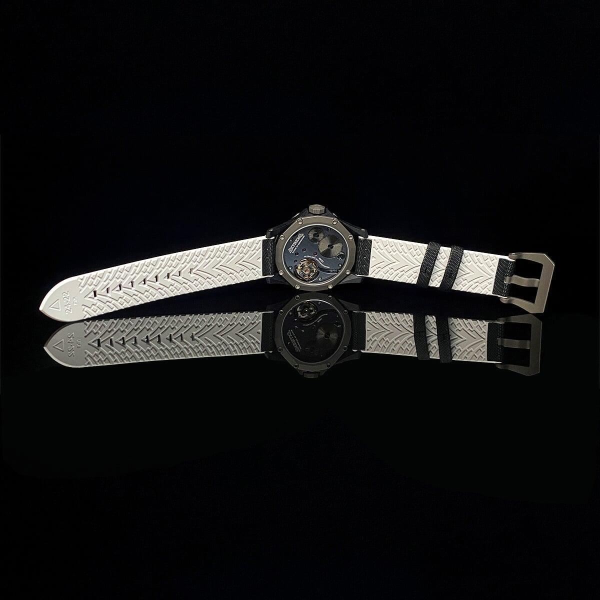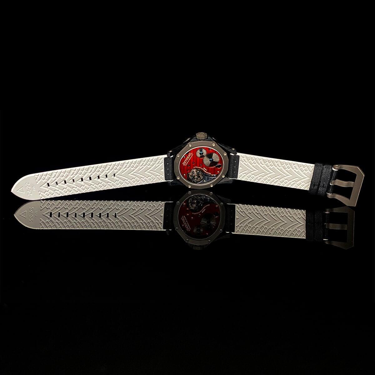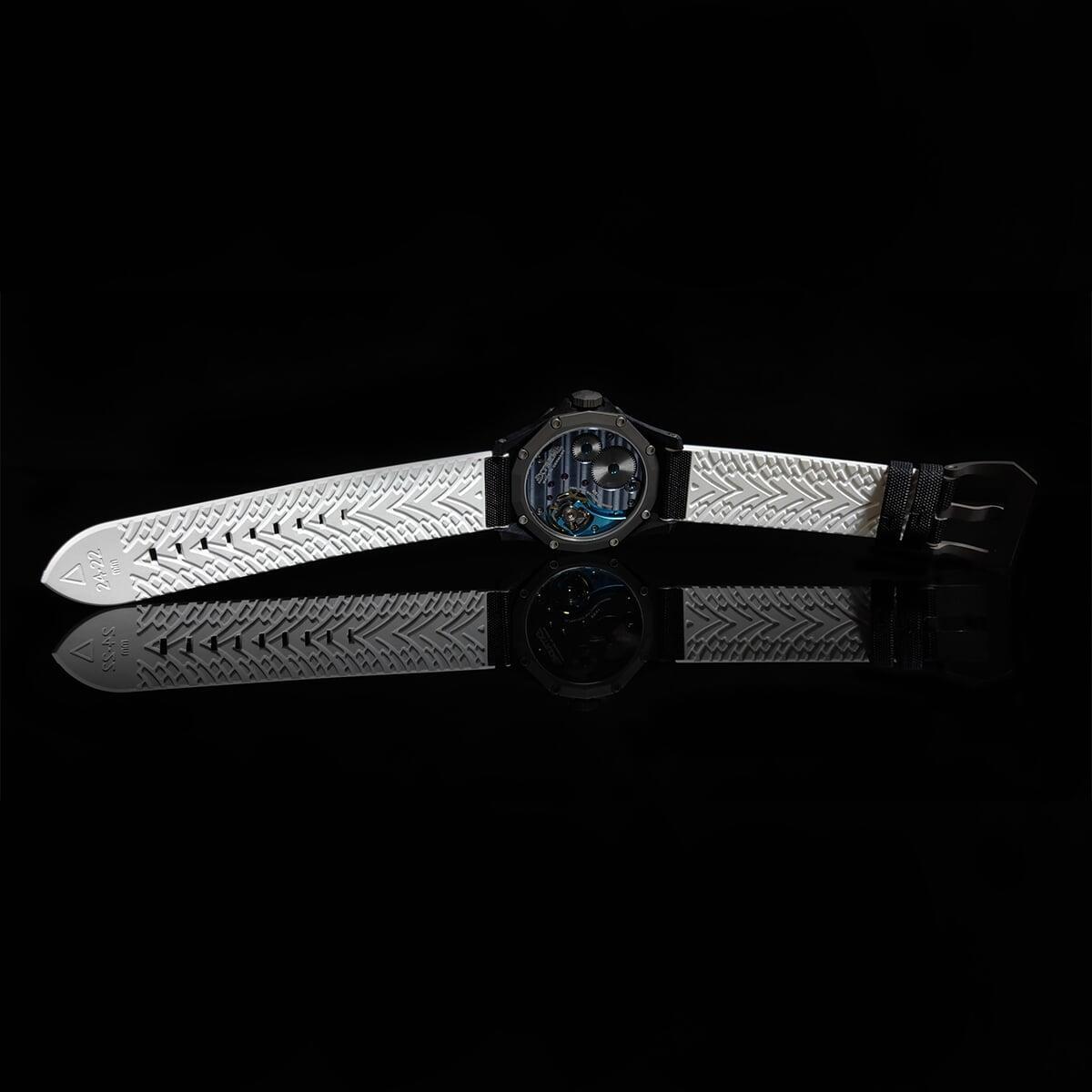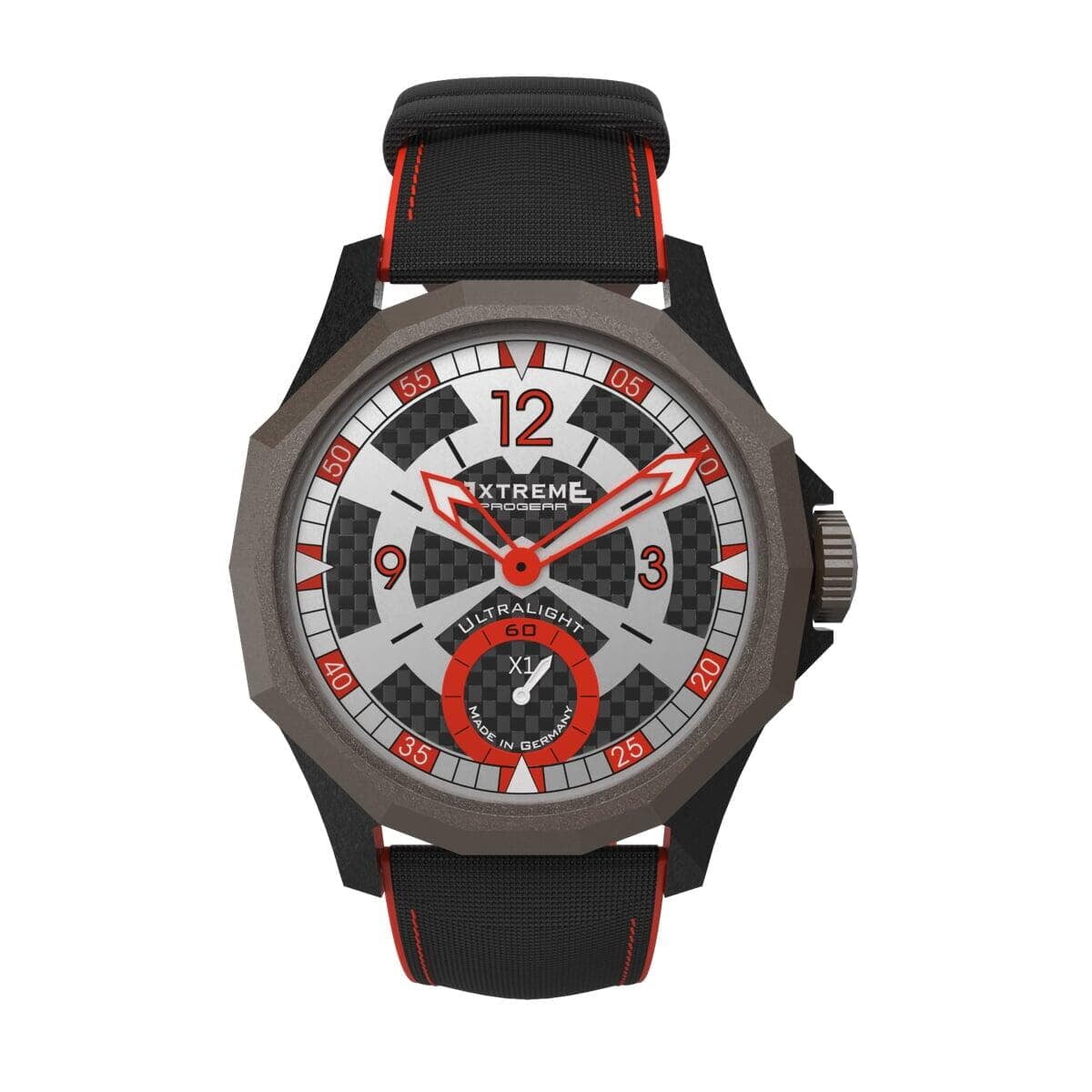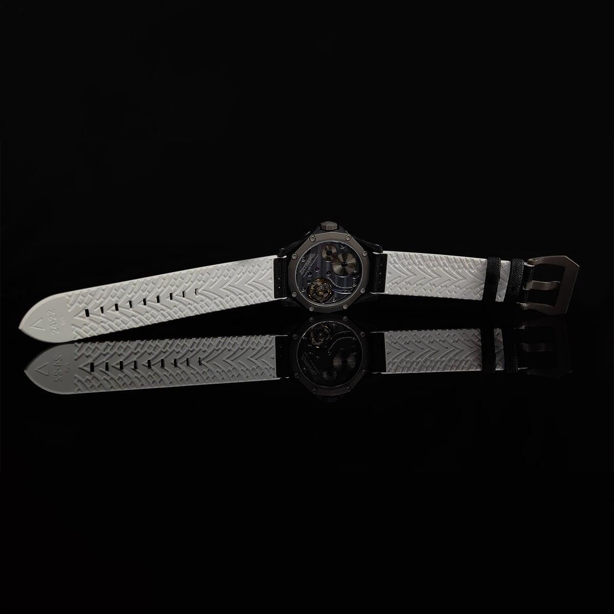 EX001 movement is an in-house designed and produced movement inside X1 model, made in Germany. The same aluminum we see in the EXTREME movement is used in aerospace programs for building the rockets which is definitely the answer for all questions about reliability of this material.