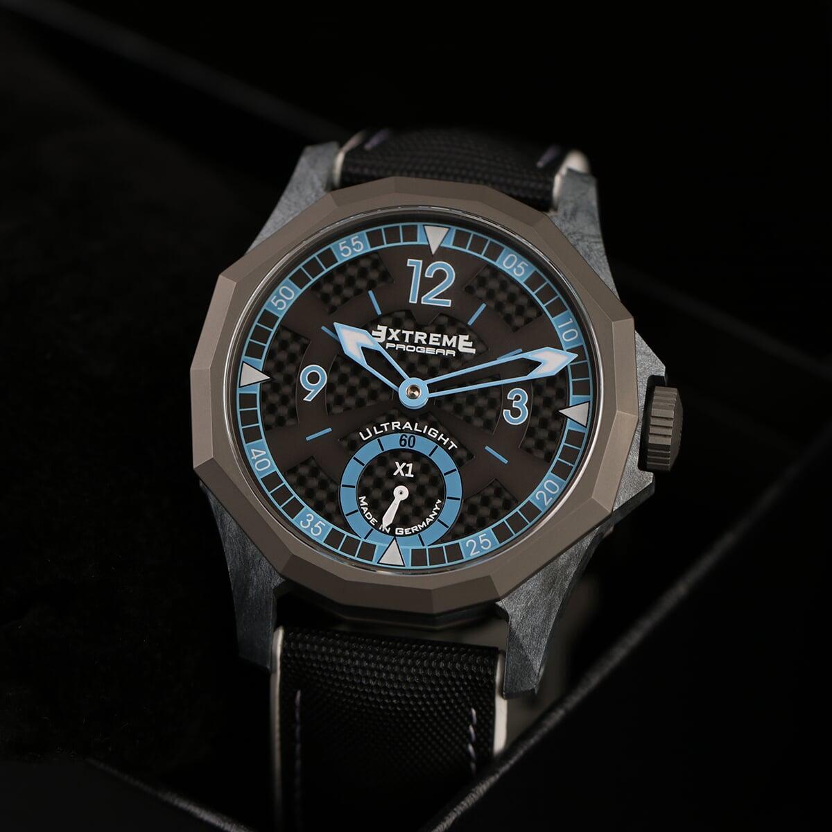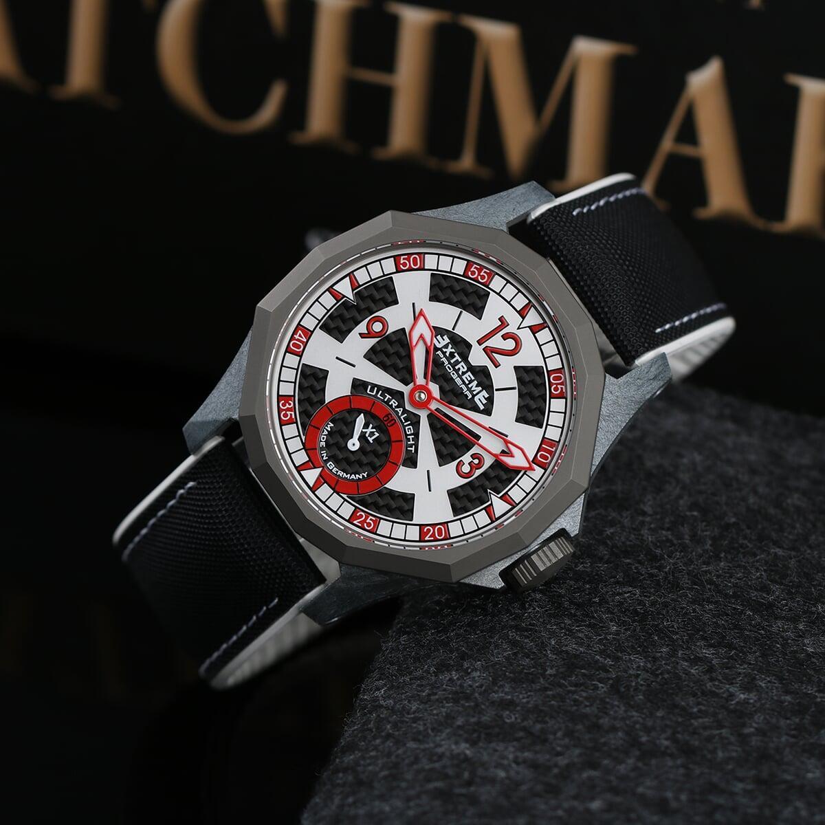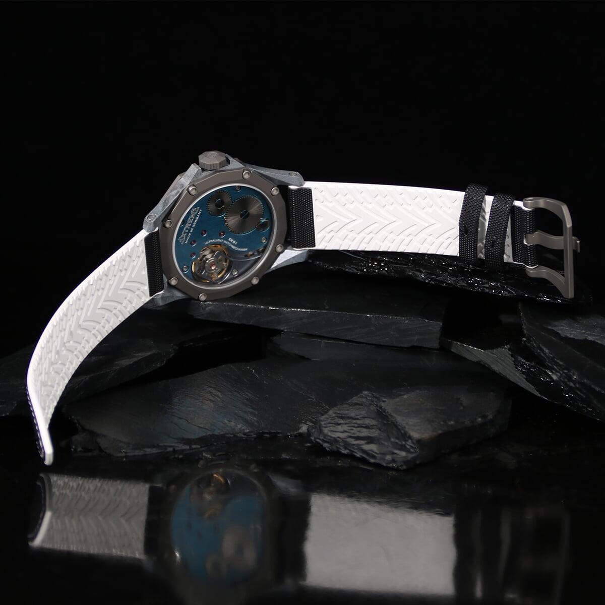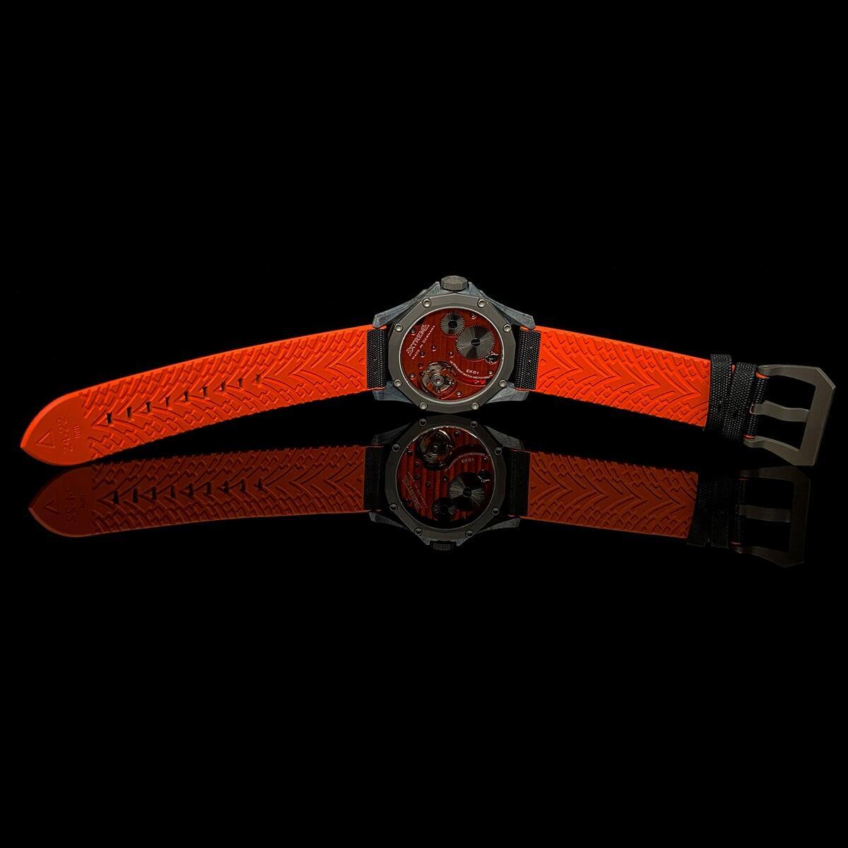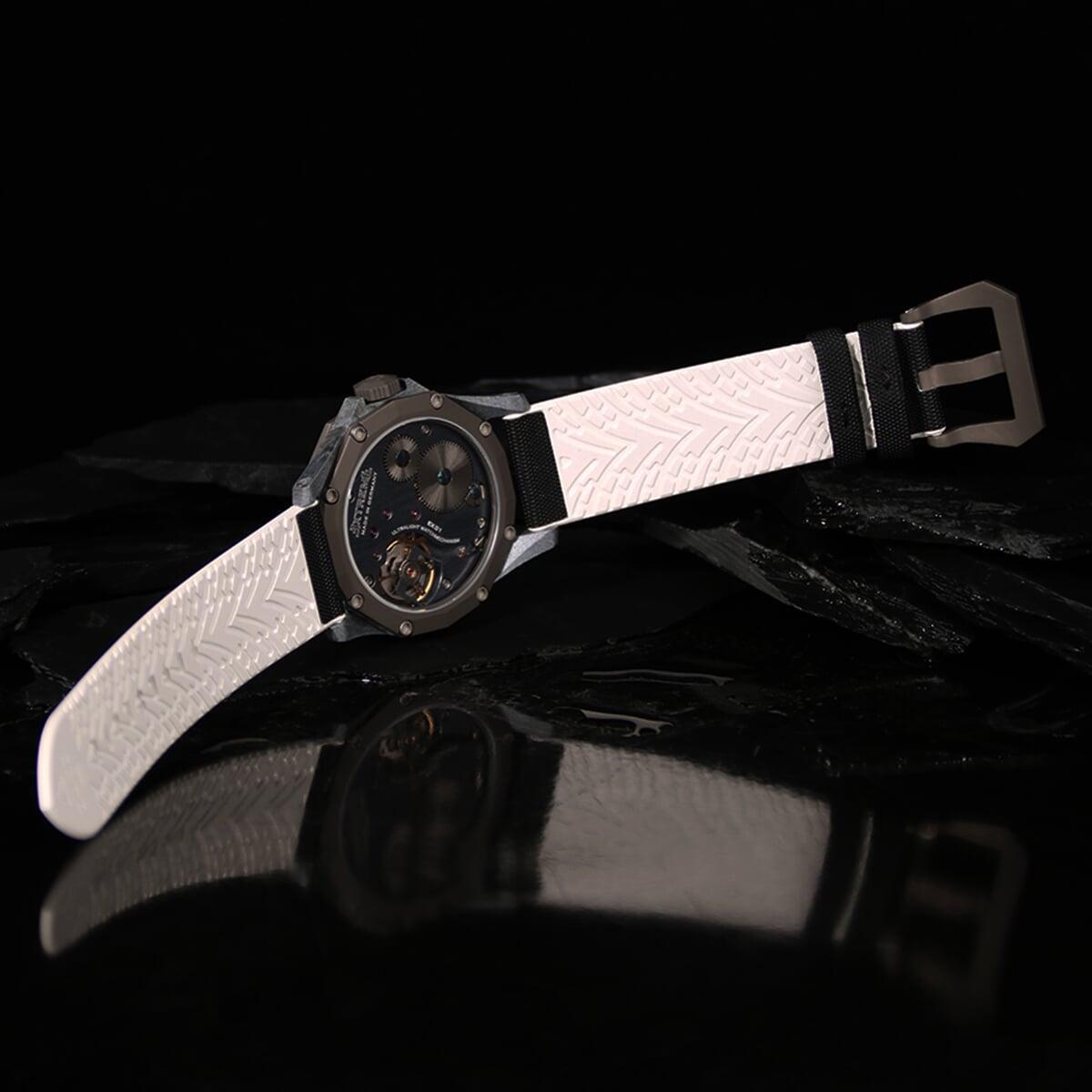 EX001 movement is an in-house designed and produced movement inside X1 model, made in Germany. The same aluminum we see in the EXTREME movement is used in aerospace programs for building the rockets which is definitely the answer for all questions about reliability of this material.