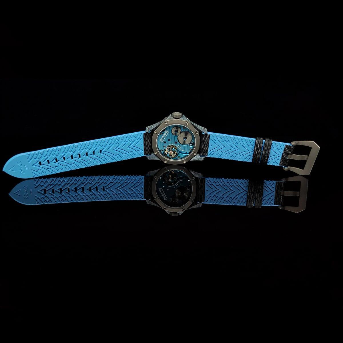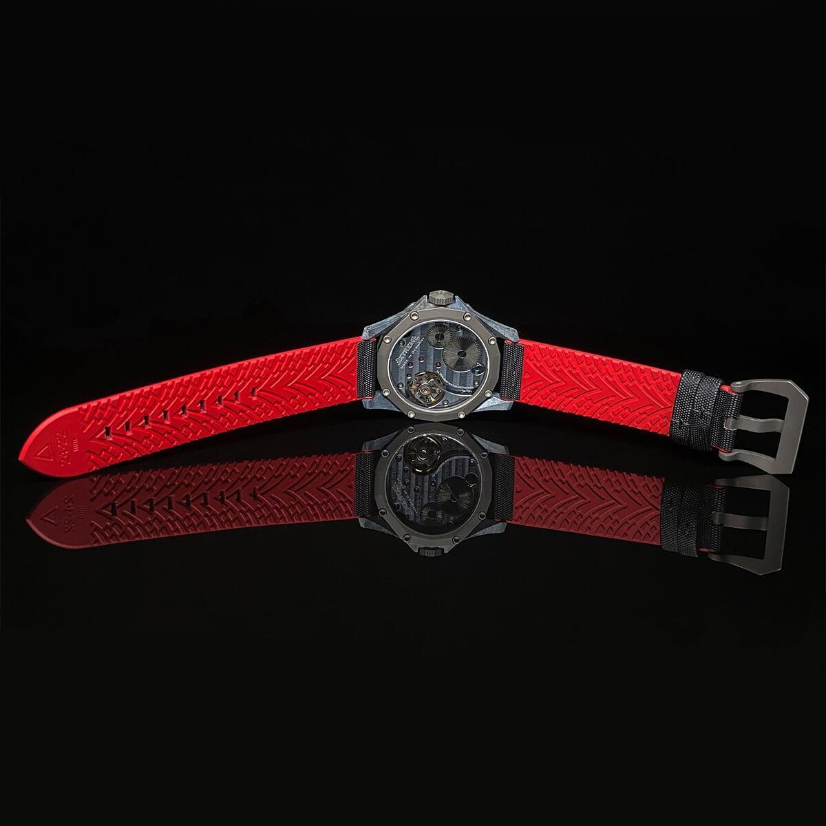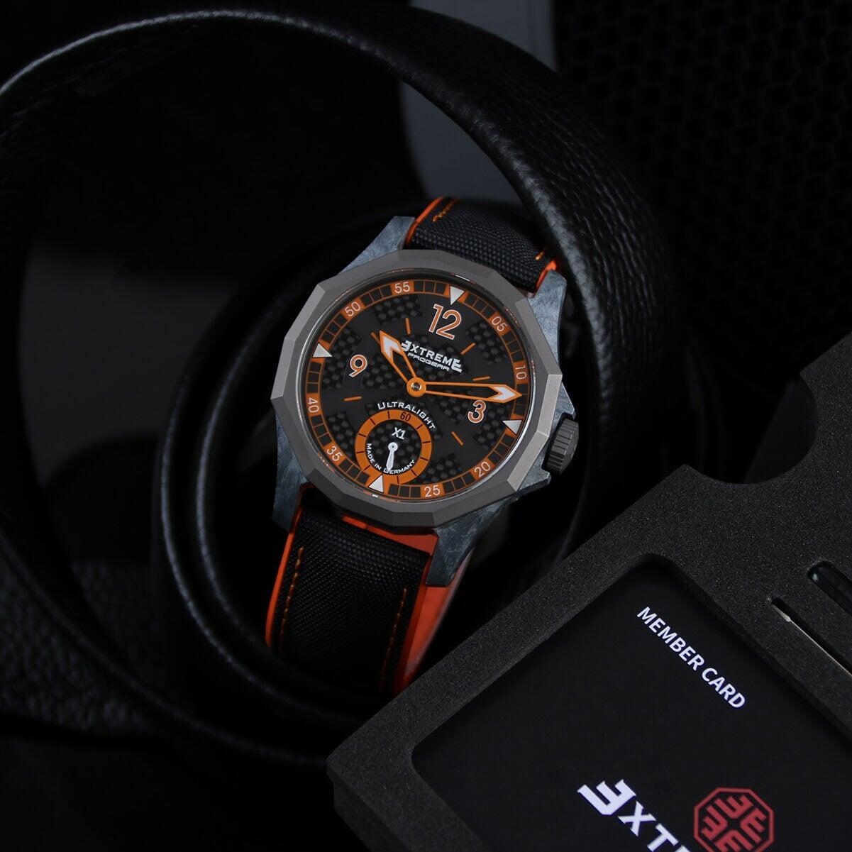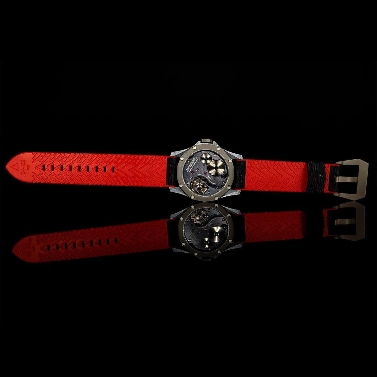EX001 movement is an in-house designed and produced movement inside X1 model, made in Germany. The same aluminum we see in the EXTREME movement is used in aerospace programs for building the rockets which is definitely the answer for all questions about reliability of this material.